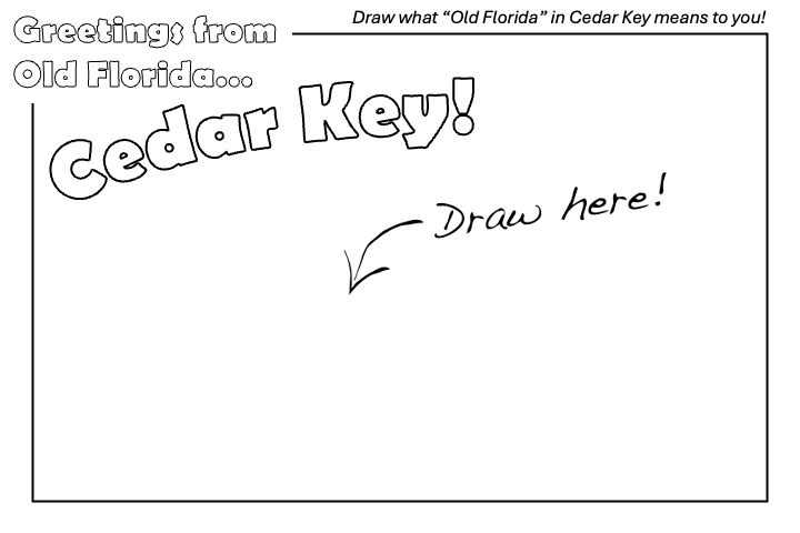 2. To submit a drawing and words – Look for these postcards around Cedar Key, with drop boxes at: