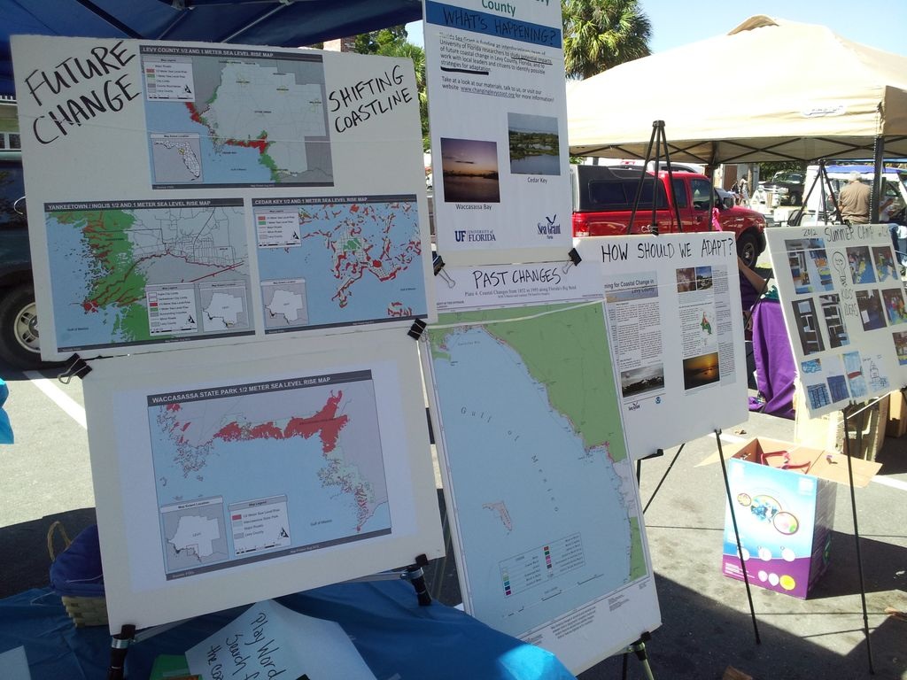 The 43rd Annual Cedar Key Seafood Festival was held this past weekend and the UF studio had the privilege of staffing an educational booth to present the project to the public. The festival provided a great opportunity to meet face to face with Levy County residents to discuss the impacts of sea level rise. Residents were able to view the sea level rise maps and ask questions about the projections. The booth also featured fun activities for the kids to get involved like writing letters to the sea and educational word searches. We would like to thank the city of Cedar Key for giving the studio the opportunity to participate in the festival. We would also like to thank the public that attended the festival for the engaging conversation and useful feedback.