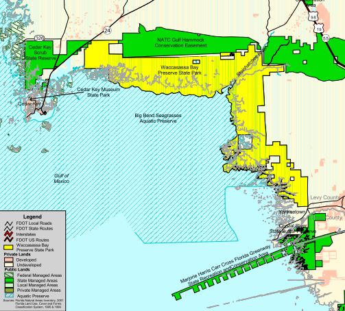 A map of the Big Bend Seagrasses Aquatic Preserve is shown below.
